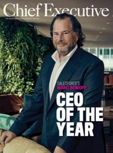 This singular combination of doing incredibly well while also doing an incredible amount of good led his peer CEOs to name Benioff Chief Executive’s 2022 CEO of the Year. “For more than two decades, Marc has been a towering exemplar of what it means to be an innovative and forward-thinking leader,” says Ken Frazier, the former chairman and CEO of Merck and our 2021 CEO of the Year, who served on this year’s selection committee. “As the founder and CEO of Salesforce, he consistently has achieved exceptional business and financial results for customers, employees and shareholders while standing tall in the public square for policies and principles that will foster greater sustainability, prosperity and equity within the business community and broader society.”